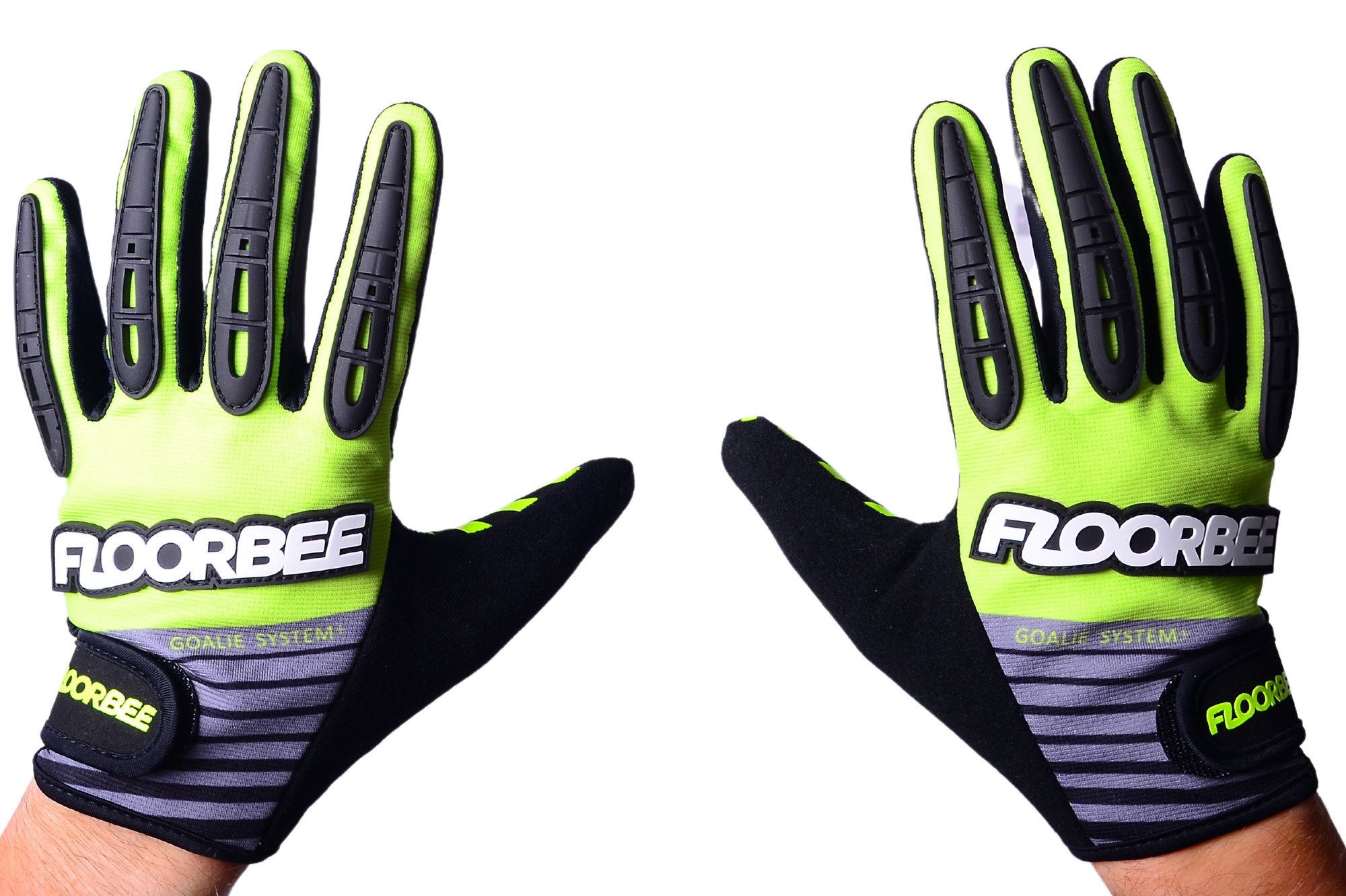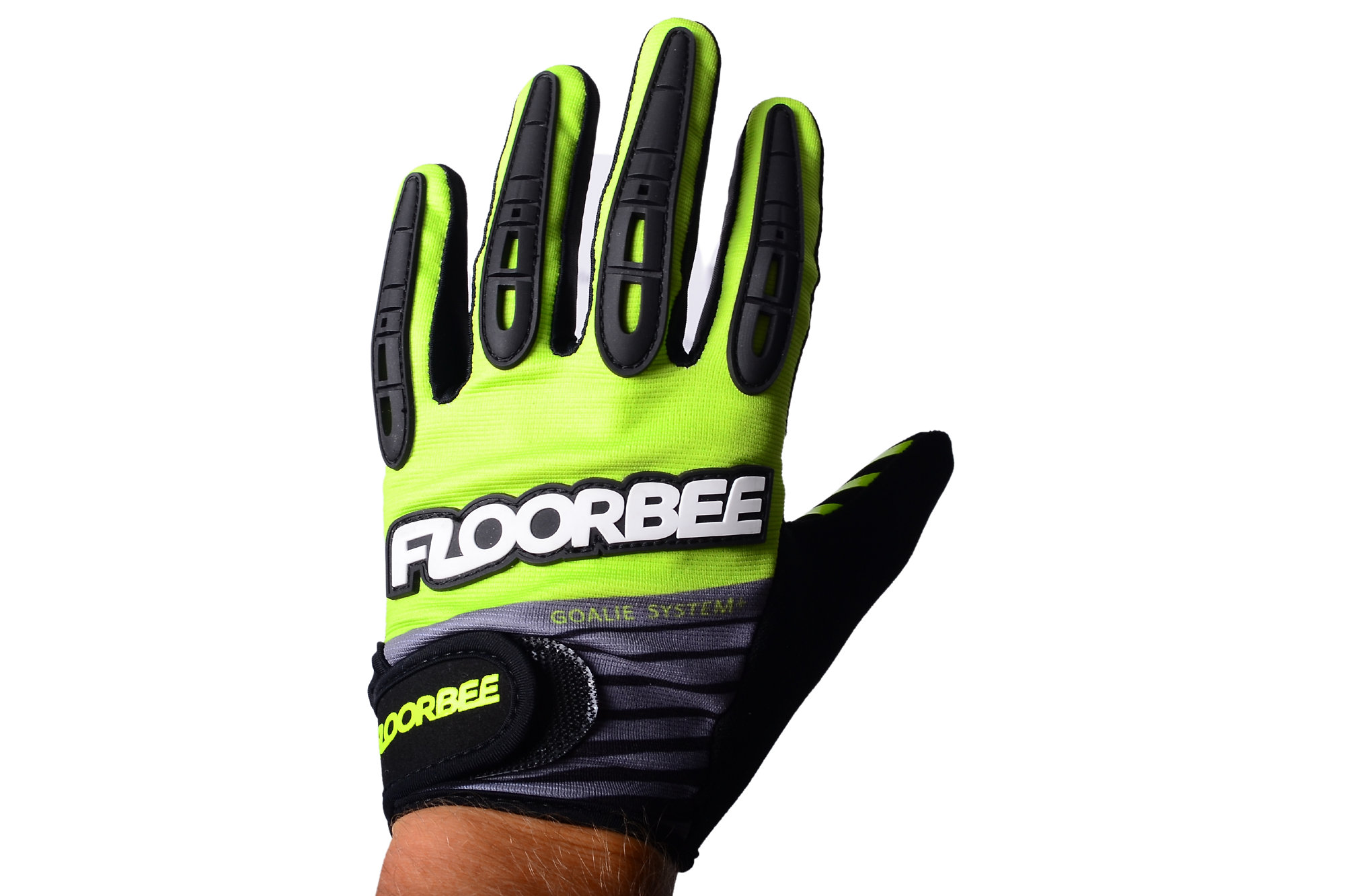 Konečně rukavice s dokonalým citem pro míček. Rukavice jsou vyvinuté tak, aby se v nich daly dělat všechny běžné činnosti spojené s brankářským “povoláním”. Rukavice STICKYHOLD mají tvarovaný střih a perfektně sedí na ruce. Tyto rukavice jsou hladké a jsou vyrobené ze strečové látky a gumy. Dlaň brankářské rukavice STICKYHOLD je vyrobena z gumového materiálu potaženého silikonem. Materiál má vzor malých čtverců rozpínajících se kolem nápisu FLOORBEE. Tento vzor umožňuje lepší úchop. Na vnějším straně je materiál rukavic opatřen sametovým měkkým povrchem.