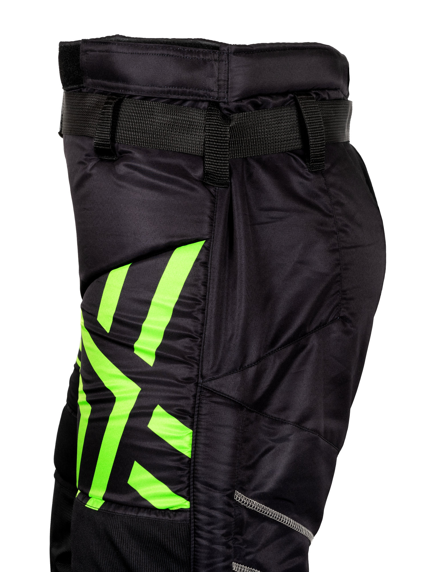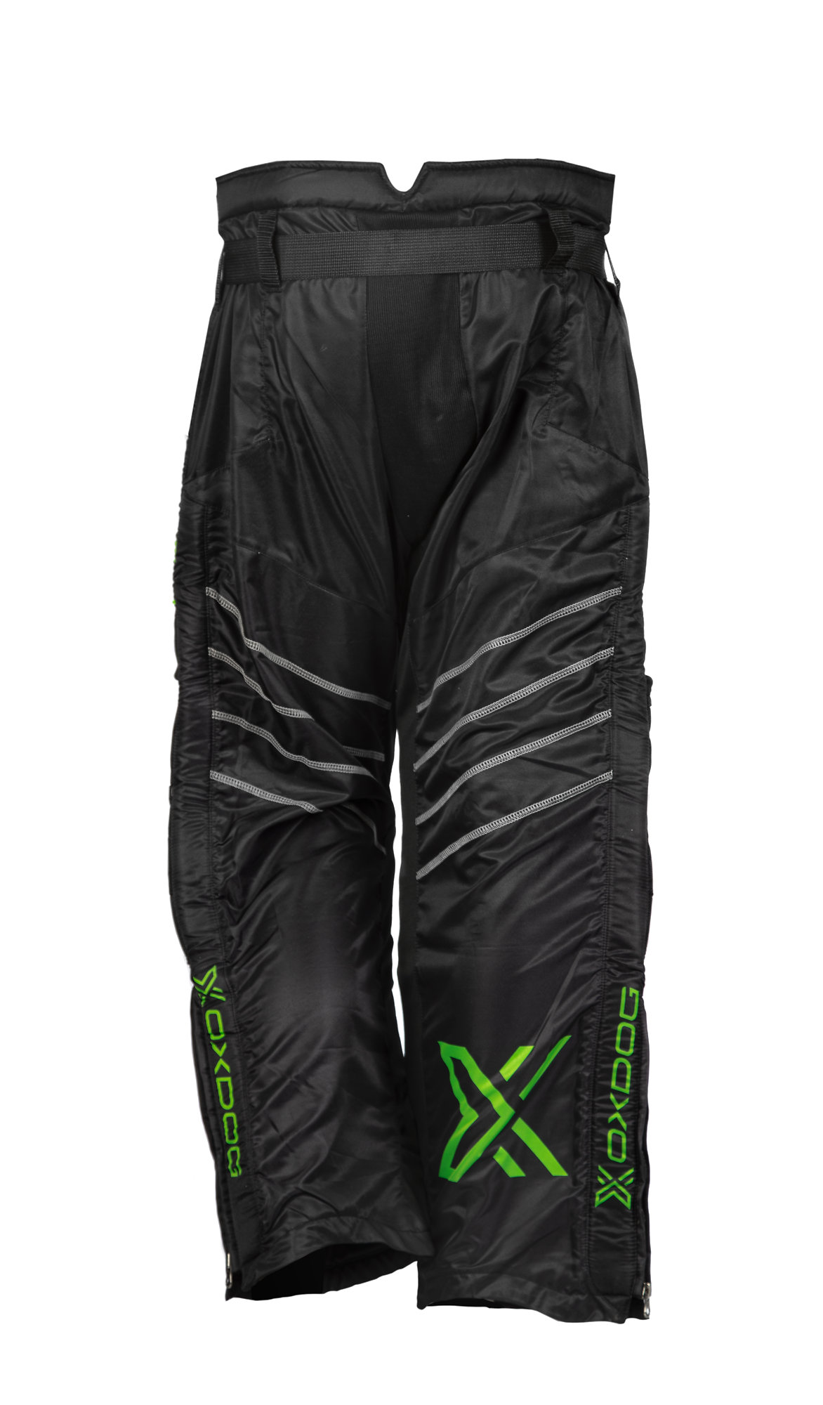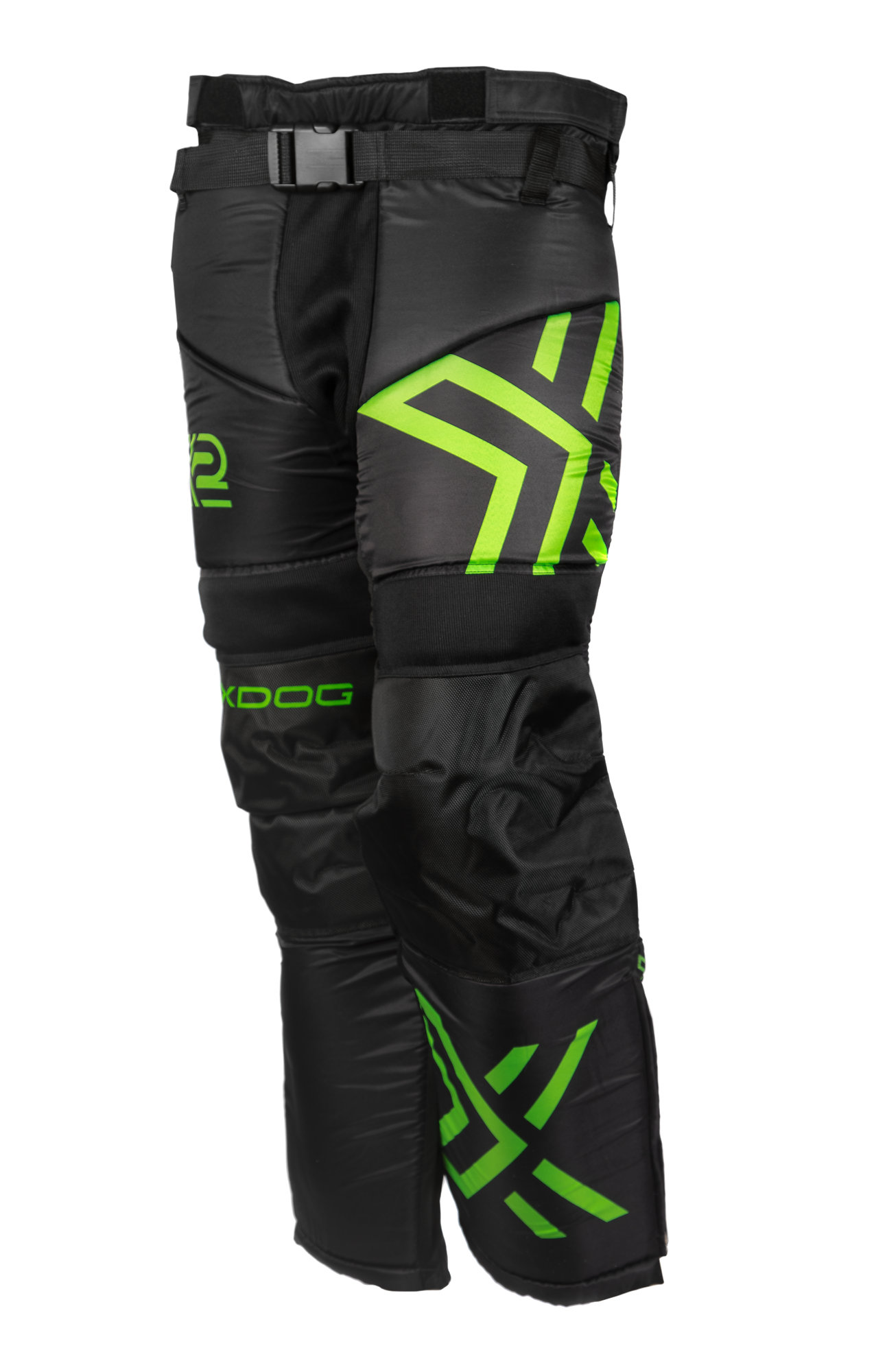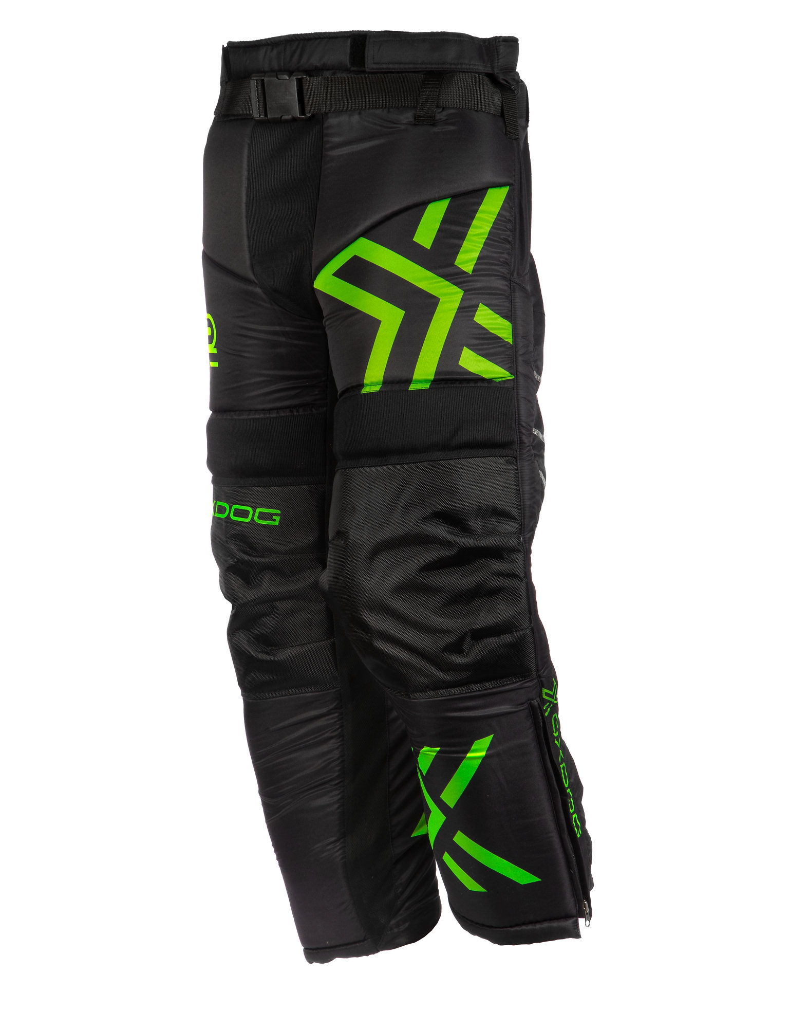 Kalhoty mají polstrování pro ochranu boků a kolen, což brankářům pomáhá hrát s větší jistotou. Nastavitelný opasek s přezkou a zipy na nohavicích usnadňují oblékání. Prodyšná tkanina s technologií odvádění potu udržuje hráče v suchu a pohodlí.