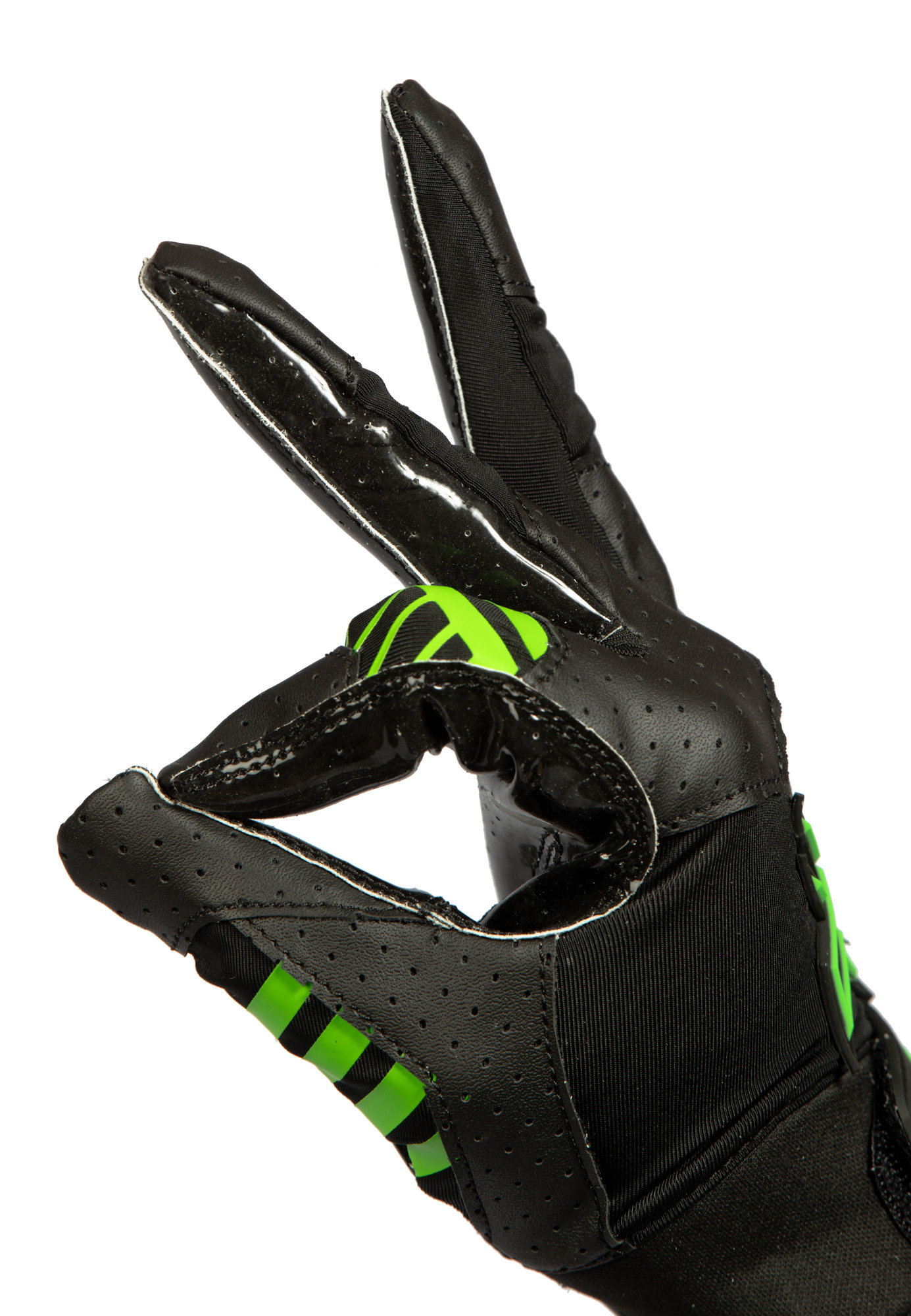 X2 SILICON SR GOALIE GLOVE black/green jsou brankářské rukavice navržené pro maximální cit pro míček. Dlaně a prsty jsou potažené silikonovou vrstvou, která zajišťuje skvělou přilnavost a kontrolu nad míčkem. Rukavice mají tvarovaný střih, který perfektně sedí na ruce a umožňuje maximální pohyblivost.